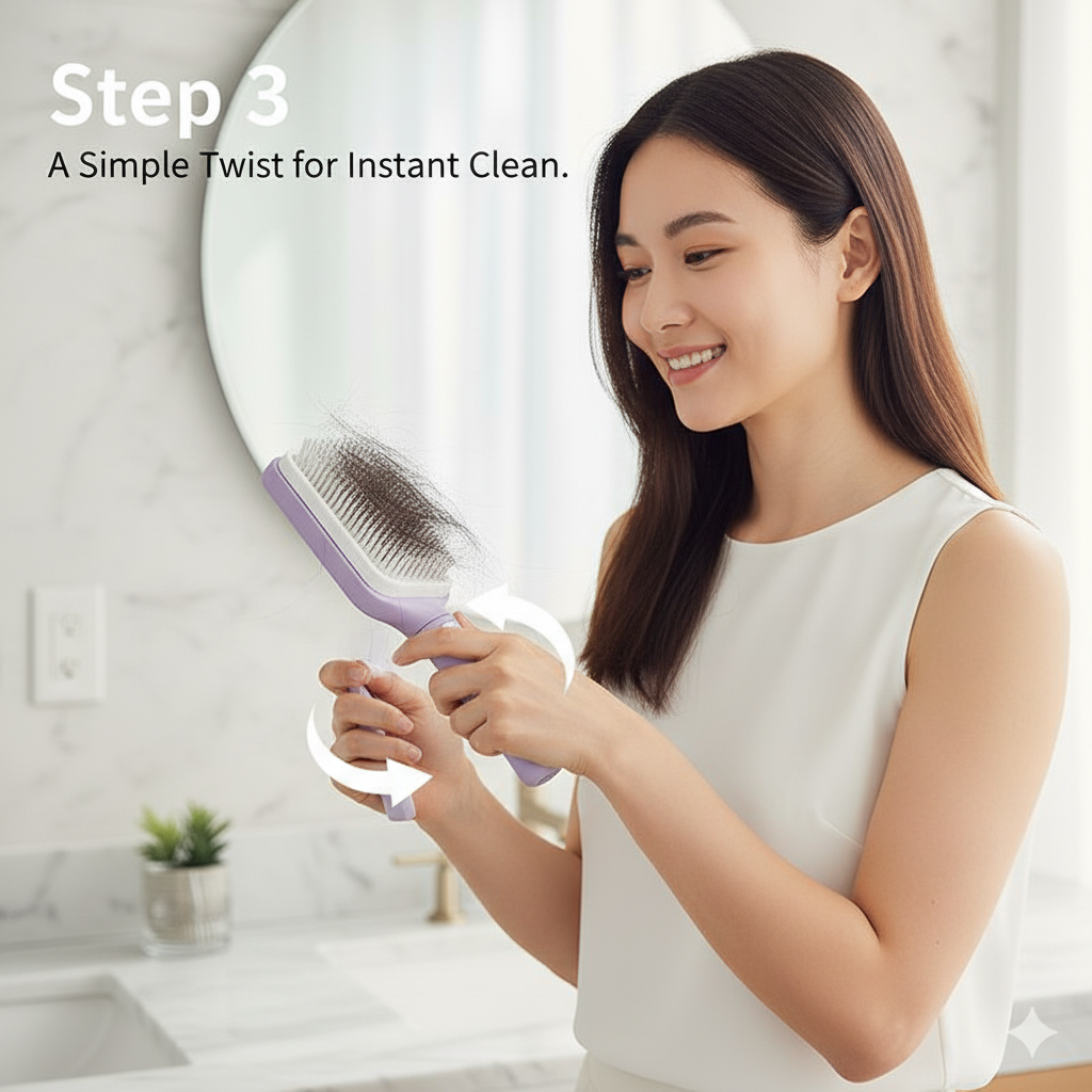 Designed for everyday convenience, the TwistComb™ not only makes styling easier but also ensures your brush stays clean, hygienic, and long-lasting.